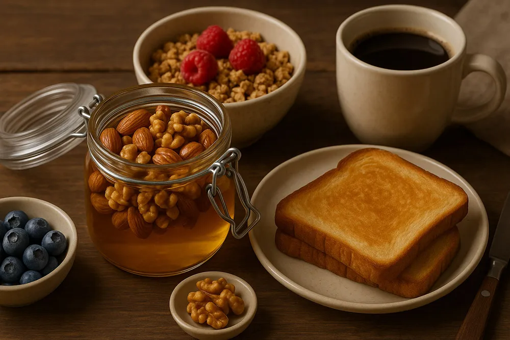 Diese Mischung vereint die natürliche Süße und antibakterielle Wirkung des Honigs mit der wertvollen Nährstoffdichte der Nüsse. Nüsse liefern hochwertige pflanzliche Proteine, ungesättigte Fettsäuren, Mineralstoffe wie Magnesium, Zink und Eisen sowie wichtige Vitamine der B-Gruppe und Vitamin E. In Kombination mit Honig entsteht ein natürlicher Energiespender, der nicht nur lecker, sondern auch wohltuend für Körper und Geist ist. Hier sind einige davon:
